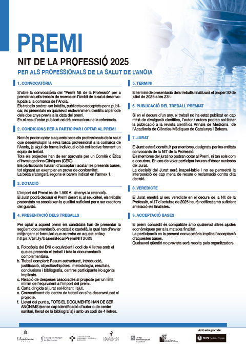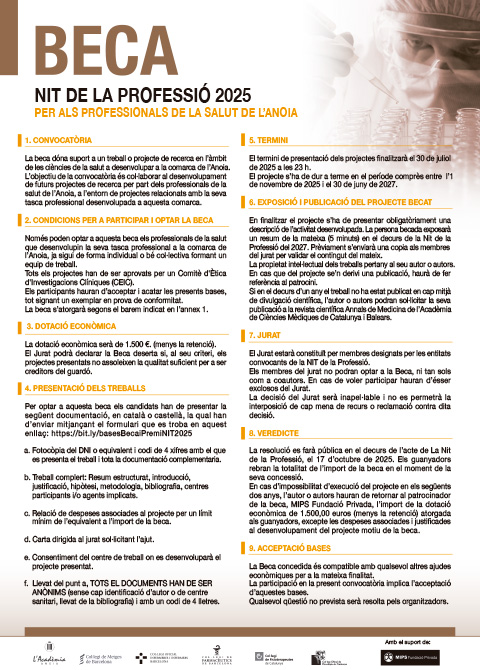 La Nit de la Professió és la trobada anual dels professionals de la salut de l’Anoia i està organitzada per la filial de l’Anoia de l’Acadèmia de Ciències Mèdiques, la Junta Comarcal de l’Anoia del CoMB, i les delegacions comarcals del Col·legi d’Infermeres i Infermers, el Col·legi de Farmacèutics, el Col·legi de Fisioterapeutes de Catalunya i el Col·legi de Psicòlegs de Catalunya.