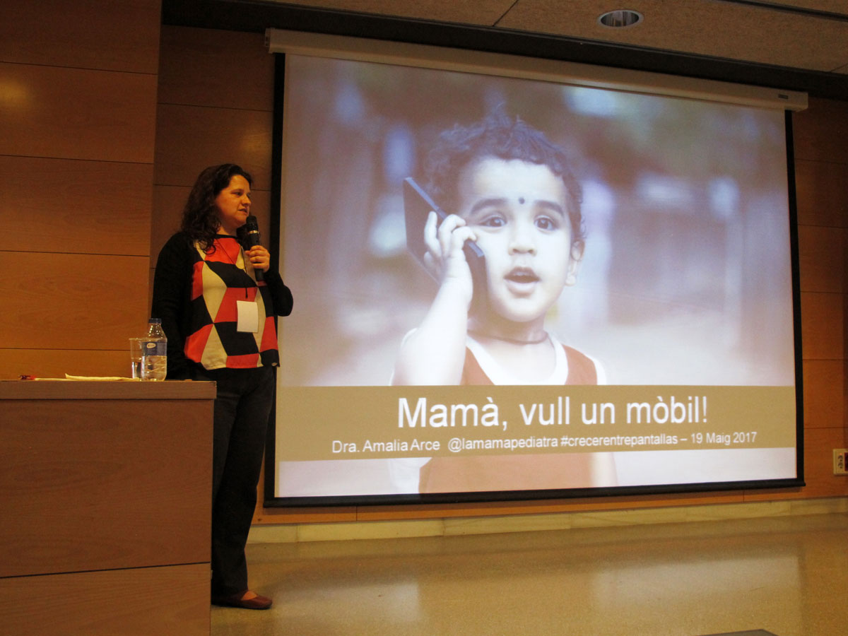 La pediatra Amalia Arce, responsable d’e-salut de l’Hospital de Nens de Barcelona, va fer la conferència de cloenda Mama, vull un mòbil. Arce va abordar des de la seva experiència personal , com a mare d’adolescent i professional, el moment d’introducció dels menors al món digital. La millor manera de tenir-ne un control és, segons la pediatra, educar-los amb l’exemple i acompanyar-los a la xarxa.
