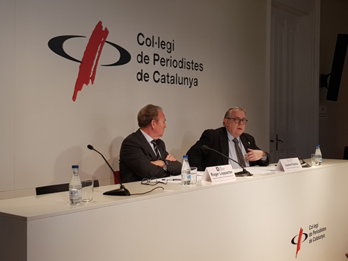Roda de prensa de presentación del documento. De izquierda a derecha: Sr. Roger Loppacher, presidente del CAC y Dr. Jaume Padrós, presidente del CoMB