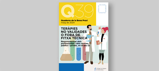 La colección Cuadernos de la Buena Praxis, editada por el Colegio de Médicos de Barcelona (CoMB) y el Consejo de Colegios de Médicos de Cataluña (CCMC), acaba de incorporar un nuevo título que responde a la necesidad de definir estos escenarios y también las responsabilidades que se derivan. El documento Terapias no validadas o fuera de ficha técnica. Responsabilidad de los profesionales y de los centros, públicos y privados, en su uso quiere aportar herramientas para profesionales e instituciones ante este entorno complejo y, a su vez, delimitar la responsabilidad y el comportamiento ante la utilización de terapias no validadas o de dudosa utilidad clínica.