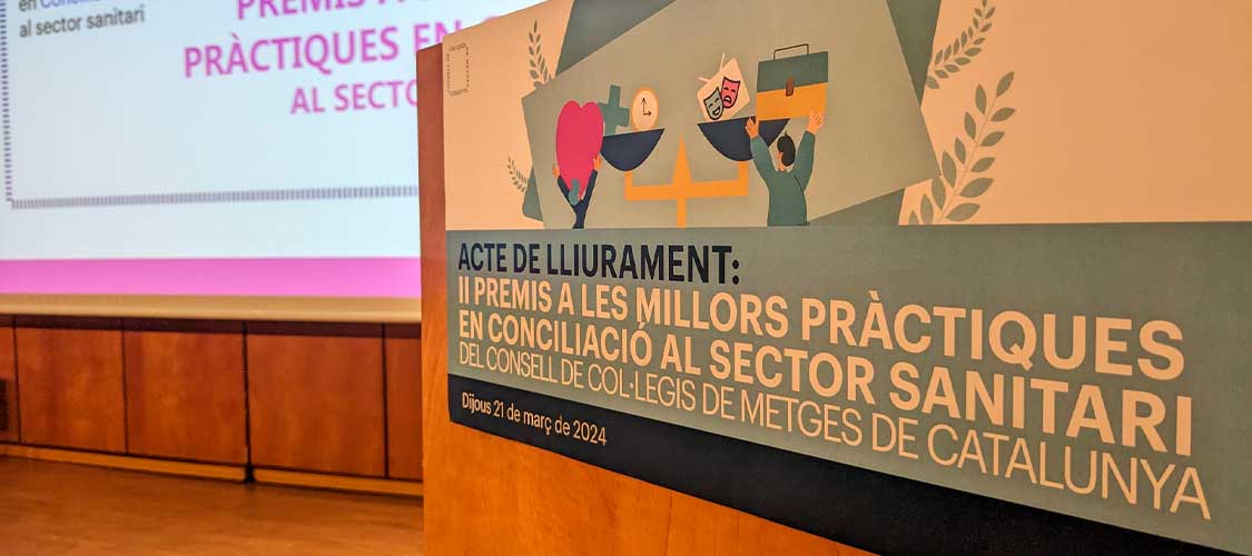 El Consell de Col·legis de Metges de Catalunya (CCMC) va lliurar el passat dijous, 21 de març, a la seu del CoMB, els II Premis a les millors pràctiques en conciliació al sector sanitari, uns guardons amb els quals els col·legis de metges catalans volen posar en valor públicament iniciatives liderades pels professionals des de les seves organitzacions per donar resposta a les necessitats de conciliació de la vida professional, familiar i personal. Aquests premis suposen una oportunitat per divulgar aquestes experiències entre el col·lectiu i per animar altres organitzacions, professionals i equips a dissenyar i posar en marxa iniciatives adaptades a cada entorn de treball. L’acte de lliurament dels guardons va tenir lloc en el marc de la celebració del Dia de la Conciliació i la Corresponsabilitat, que se celebra el 23 de març.