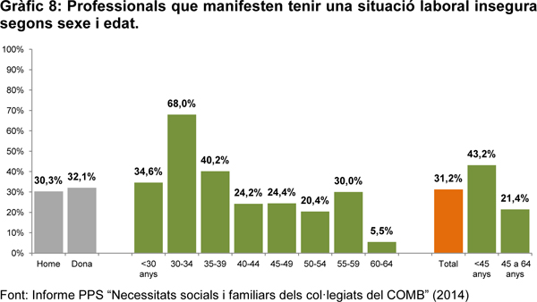 • Entre el col·lectiu de menys de 45 anys, la inestabilitat laboral afecta la meitat dels professionals, segons un estudi del CoMB