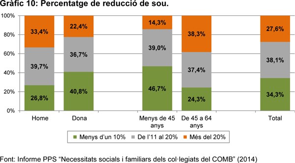 El 86,6% dels metges han vist reduït el seu sou amb la crisi: el 38,1%, ingressen entre un 11% i un 20% menys i el 27,6% han patit una reducció superior al 20% (Gràfic 10)