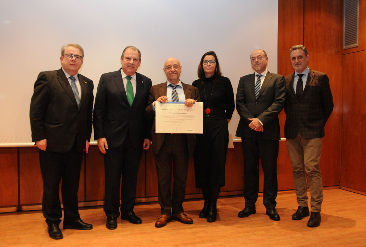 El Consell de Col·legis de Metges de Catalunya (CCMC) ha distingit el doctor Jaume Aubia i Marimon (Santa Coloma de Queralt, 1949) amb la Insígnia d’Or de la Professió Mèdica, en reconeixement a la seva dilatada trajectòria professional i al seu compromís amb els valors del professionalisme mèdic. L’acte de lliurament va tenir lloc el passat 31 de gener al Col·legi de Metges de Barcelona (CoMB). Nombrosos companys, amics i familiars, així com representants del sector sanitari, van acompanyar el doctor Aubia en aquest homenatge.
