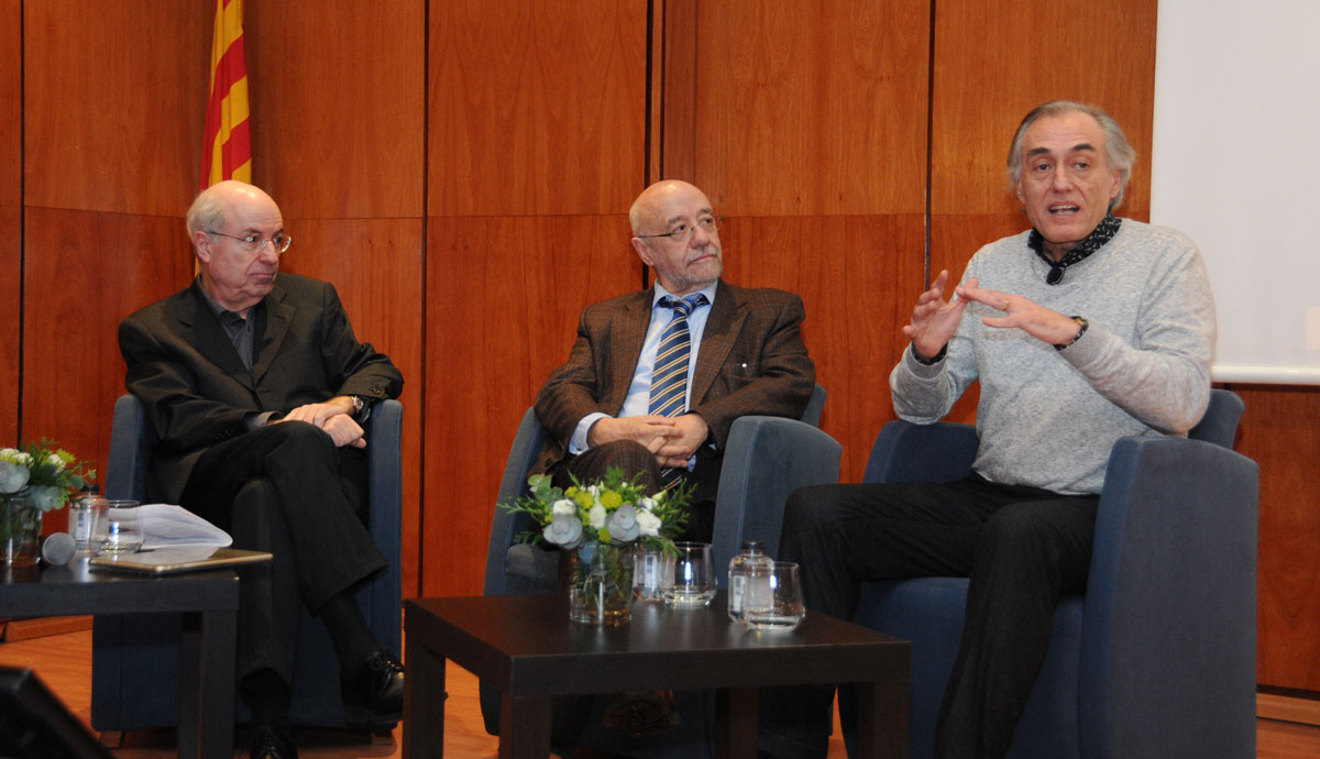 Jaume Aubia (al centre), amb Jordi Camí, director general del PRBB i de la Fundació Pasqual Maragall; i Josep Maria Puig, actual secretari general de Metges de Catalunya