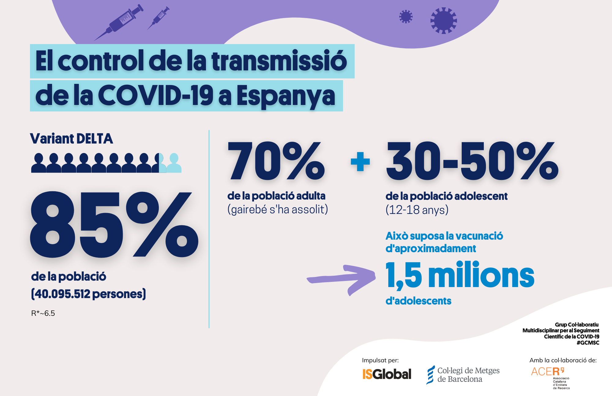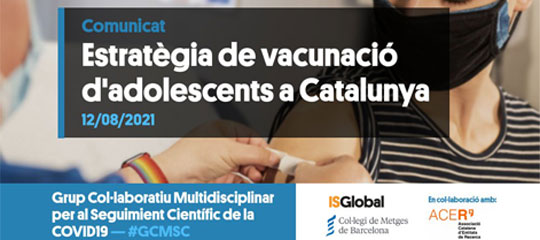 El Grup Col·laboratiu Multidisciplinari per al Seguiment Científic de la COVID-19 (GCMSC) ha emès un comunicat en el qual conclou que, donades les circumstàncies epidemiològiques a Espanya, cal vacunar la població d’entre 12 i 17 anys d'edat per assolir el control epidemiològic de la pandèmia. Després de realitzar diverses simulacions per mitjà de models matemàtics, aquest grup científic recomana procedir a la immunització d'aquesta franja d'edat "al més aviat possible" i aprofitar per a això la plataforma que ofereixen els centres escolars.