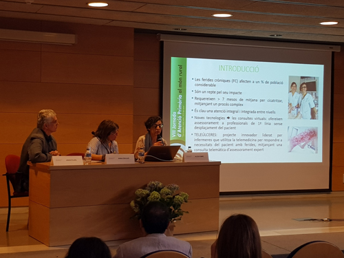 En segon lloc, es va presentar el Projecte Teleúlceres, impulsat per Maria Josep Rodríguez i Ascen Navarro, infermeres del CAP de Sant Fruitós de Bages i de la Fundació Althaia, respectivament. Amb aquesta iniciativa, que funciona a les comarques del Bages i el Berguedà, es vol millorar l’atenció a pacients amb ferides cròniques a través de consultes telemàtiques d’assessorament expert. A més de potenciar la comunicació entre professionals, el Projecte Teleúlceres vol garantir la continuïtat assistencial dels pacients i augmentar l’equitat i eficiència en l’atenció.