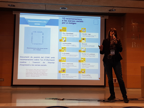 Pel que fa a la informació mèdica que es publica a la xarxa, la Dra. Sans va compartir el decàleg de les 10 recomanacions a les xarxes socials per a metges, elaborat per la Secció Col·legial de Metges d’eSalut. L’objectiu és conscienciar els professionals de la salut de la importància d’utilitzar de forma responsable les xarxes socials, tot compatibilitzant el dret a la llibertat d’expressió amb els drets a la intimitat i confidencialitat dels pacients.