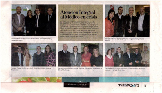 El Colegio de Médicos de la Provincia de Buenos Aires, Distrito III va engegar el Programa de Atención en Salud Mental al Médico (PASMME) ara fa deu anys. Per la seva banda, el Colegio de Médicos de la Provincia de Santa Fe Segunda Circunscripción (on s’ubica la ciutat de Rosario) va posar en marxa el Programa de Atención Profesional (Pro.A.Pro) cinc anys més tard. Tant els responsables de les dues corporacions argentines, com el president del CoMB, es van comprometre a buscar noves vies de col·laboració que els permetin compartir experiències i anar més enllà en la cura del metge malalt.