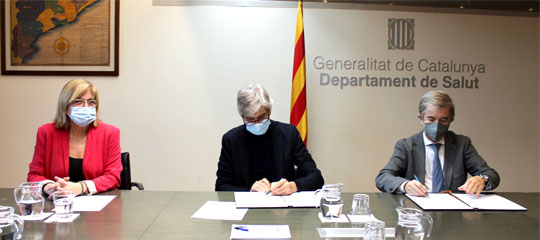 El conseller de Salut, Josep Maria Argimon, i el president de la Fundació Galatea, Miquel Vilardell, han signat un conveni per donar continuïtat al Programa de suport emocional per a professionals de l’àmbit de la salut, amb la finalitat de vetllar i promoure la salut d’aquest col·lectiu especialment impactat per la pandèmia de COVID-19, per tal que reverteixi en el seu benestar i, conseqüentment, en la bona praxi i en la salut de la població en general.