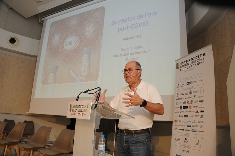 La vicepresidenta del CoMB i secretària del CCMC, Elvira Bisbe, va ser l’encarregada de donar pas a la conferència amb la qual es va tancar la 21a Jornada d’Estiu de la Professió Mèdica i la 25a Universitat d’Estiu de la URL: Els reptes de l’era postCOVID, a càrrec d’Antoni Trilla, metge epidemiòleg, degà de la Facultat de Medicina de la Universitat de Barcelona (UB) i vocal de la Junta de Govern del CoMB.