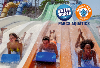 Als dos parcs aquàtics de la Costa Brava vostè podrà gaudir de diferents atraccions com: piscines d’onades, rius ràpids, tobogans, kamikazes i les fantàstiques pistes toves. Un conjunt d’atraccions orientades tant per a públic infantil com per a adult. Els parcs aquàtics Aquadiver a Platja d’Aro i Water World a Lloret de Mar són l’espai perfecte per passar uns dies inoblidables amb la família i els amics.