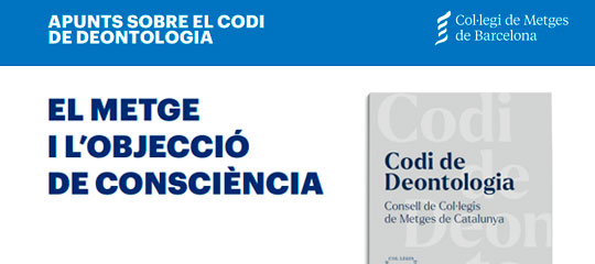 La Comisión de Deontología del CoMB publica la tercera ficha de la colección Apuntes del Código de Deontología, en esta ocasión, dedicada a la objeción de conciencia. Estas publicaciones abordan temas y situaciones concretos de la práctica profesional que pueden generar dudas y se vinculan con normas del Código de Deontología que se refieren a ellas. Los dos primeros apuntes con los que se estrenó la iniciativa se refieren a la comunicación del error médico y a la elaboración de informes, certificados y peritajes médicos.