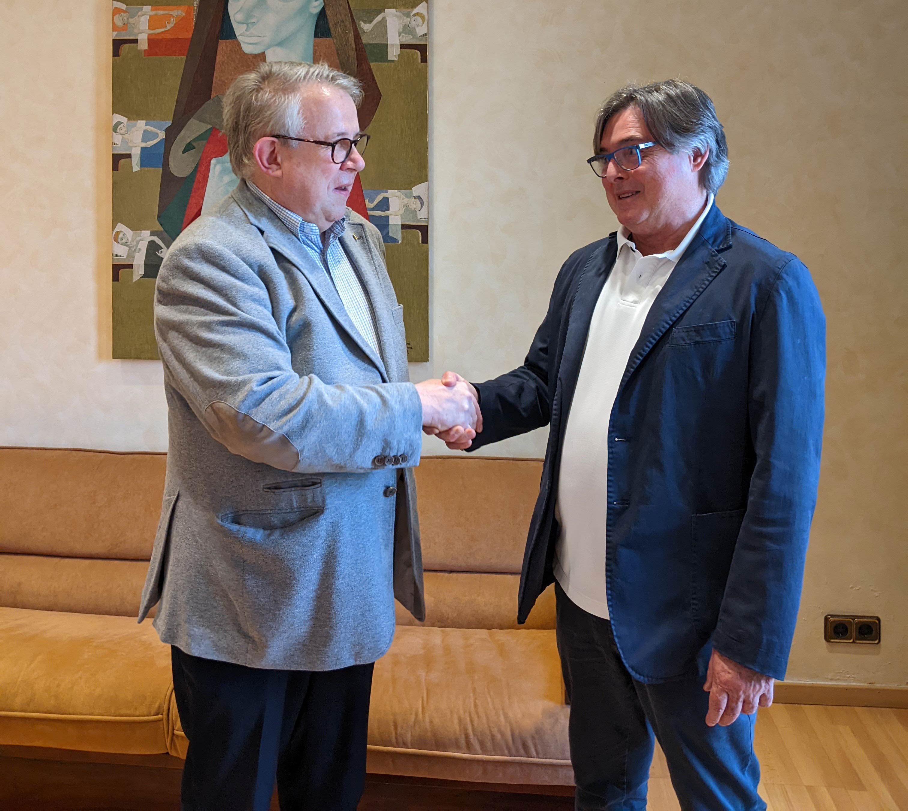 El presidente del CoMB, Jaume Padrós, en una reunión con el presidente de Farmamundi (2014-2022), Ricard Troiano
