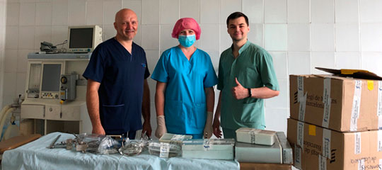 Donaciones y envío de material sanitario diverso y de un ecógrafo en la ciudad de Novograd-Volynskyi