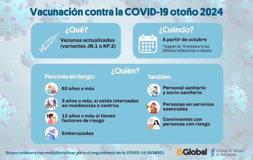 El Grupo Colaborativo Multidisciplinar para el Seguimiento Científico de la COVID-19 (GCMSC) ha hecho público un comunicado sobre la campaña de revacunación contra la COVID-19 que comienza a partir de la última semana de septiembre.