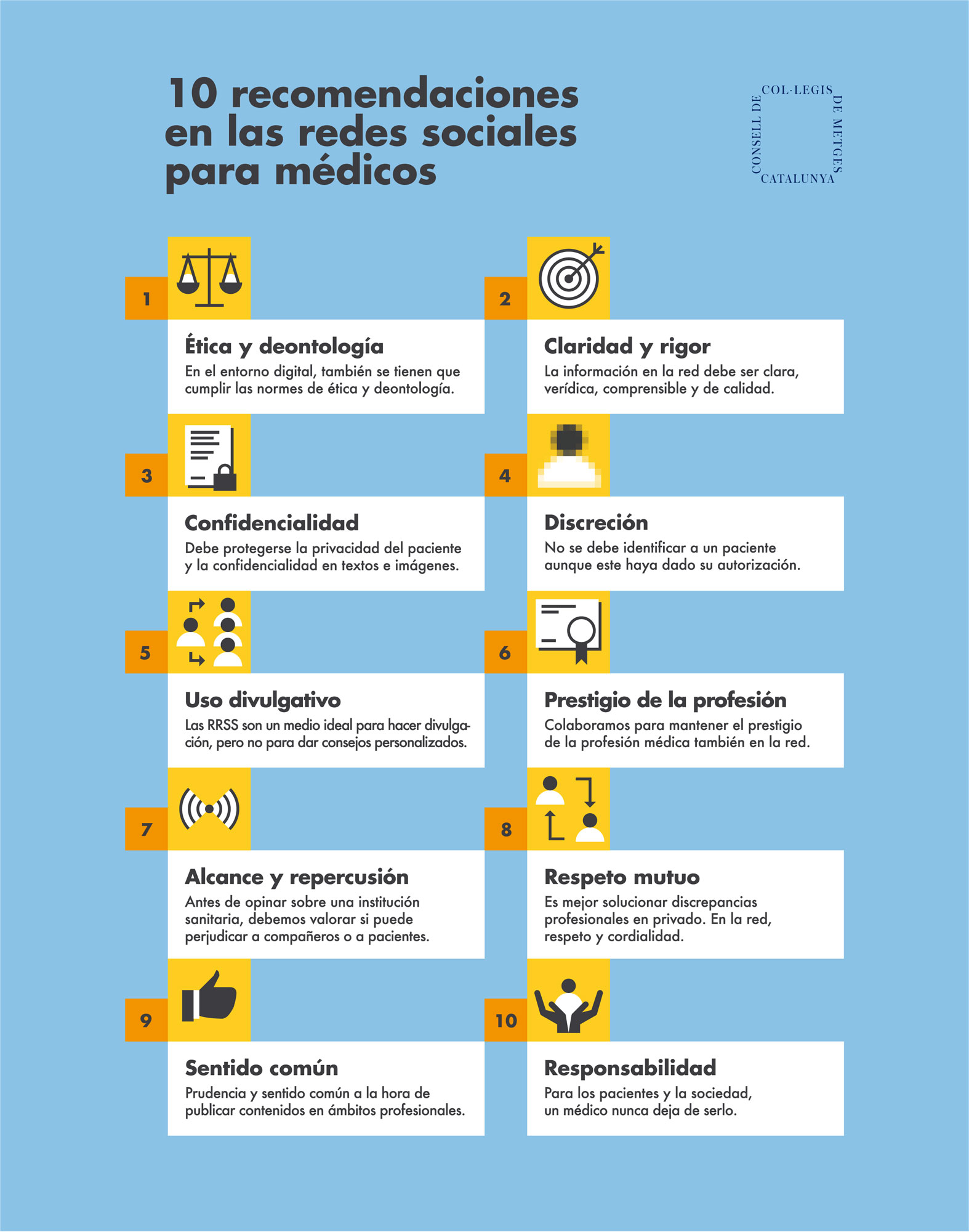 Los Colegios de Médicos catalanes elaboran un decálogo con recomendaciones básicas para el uso de las redes sociales por parte de los profesionales