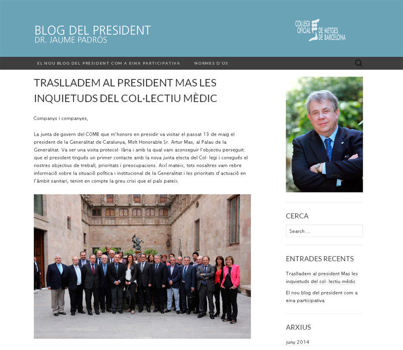 El COMB inicia un nuevo canal de comunicación. El presidente de la corporación, Dr. Jaume Padrós, inaugura un blog personal para trasladar a los colegiados y a la ciudadanía el trabajo de la Junta de Gobierno y sus preocupaciones.
