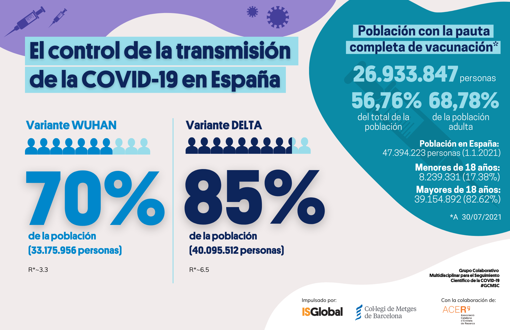 Si en un principio se estimó en un 70% la cobertura vacunal necesaria para alcanzar la inmunidad de grupo, el comunicado del GCMSC subraya que "la aparición de diferentes variantes, y en particular de la variante Delta, ha obligado a reconsiderar al alza la cifra del umbral de inmunidad de rebaño, considerándolo ahora más próximo al 85%". Ante el "reto sin precedentes" que supone alcanzar un grado tan elevado de cobertura vacunal, las y los expertos del grupo proponen evaluar estrategias alternativas para "acercarnos al máximo a la inmunidad de grupo o, en su defecto, a un control epidemiológico o funcional de la pandemia, entendiéndose como una reducción significativa de los casos con gravedad y que requieran hospitalización, aun aceptándose transmisión residual".