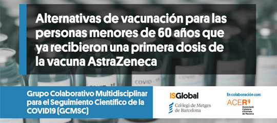 Ante la necesidad de ofrecer una respuesta a estos miles de personas que esperan completar su inmunización, el Grupo Colaborativo Multidisciplinar para el Seguimiento de la COVID-19 (GCMSC), impulsado por el Colegio de Médicos de Barcelona (CoMB) e ISGlobal Barcelona, acaba de emitir un comunicado en el que recomienda que se complete la vacunación de estas personas con una segunda dosis de la vacuna AZ. Los expertos que forman parte de este grupo han revisado las evidencias disponibles sobre los riesgos y beneficios que implicaría administrar una segunda dosis de AZ a estas personas, versus los riesgos que supondría administrar otro tipo de vacuna (ARNm) o bien no administrar -ne otra y han concluido: