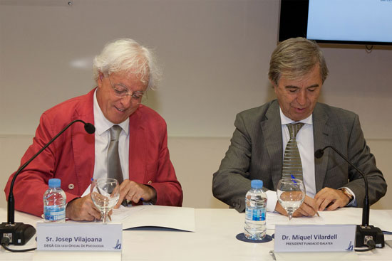 La Fundación Galatea y el Colegio Oficial de Psicología de Catalunya (COPC) han firmado un convenio de colaboración para desarrollar un programa asistencial de atención a los psicólogos con trastornos mentales y conductas adictivas. Además de este programa específico, ambas instituciones también pondrán en marcha programas de prevención y promoción de la salud de los psicólogos, centrándose especialmente en su estilo de vida, sus condiciones de trabajo y el nivel de estrés y “burn-out” al que están sometidos.