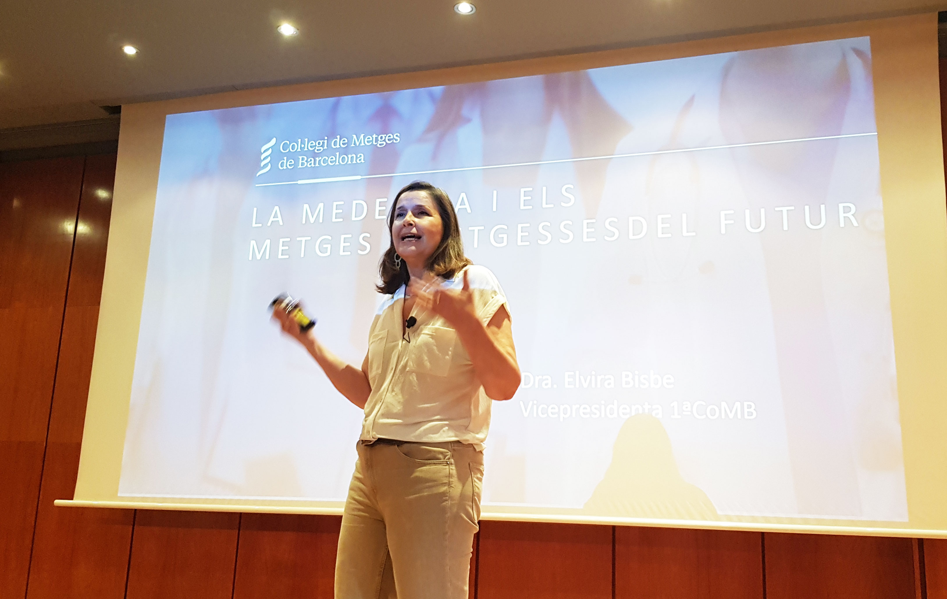 La vicepresidenta del CoMB, Elvira Bisbe, pronunció la conferencia: “La medicina y los médicos y médicas del futuro”, donde planteó algunos de los retos de futuro de una profesión que está en plena transformación tecnológica para la que se requiere una gran capacidad de adaptación por parte de los profesionales y de trabajo conjunto con equipos multidisciplinares de diferentes sectores y profesiones Los médicos del futuro, según Bisbe, tendrán que saber gestionar la complejidad y no podrán dejar de lado ni las habilidades técnicas ni la empatía a los pacientes, ya que "las máquinas no son empáticas ni pueden hacer a los pacientes partícipes de las decisiones". Bisbe terminó la conferencia recordando uno de los principios del 3r Congreso de la Profesión Médica, celebrado en Girona en 2016: "Las personas son el centro de nuestra actividad y de nuestra vocación".