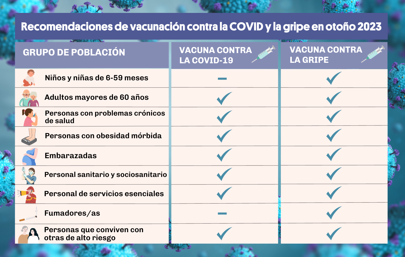 Tabla. Recomendaciones de vacunación contra la COVID y la gripe en otoño de 2023.