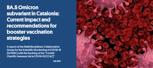 Multidisciplinary Collaborative Group for the Scientific Monitoring of COVID-19. Blanco, J., Sarukhan, A,. Díez, J., Bassat, Q., Campins, M., Guerri, R., Brotons, C., Sans, M., Miro, JM., de Sanjosé, S., 2022. BA.5 Omicron subvariant in Catalonia: Current impact and recommendations for booster vaccination strategies. ISGlobal, CoMB. Accessible at http://hdl.handle.net/2445/187666