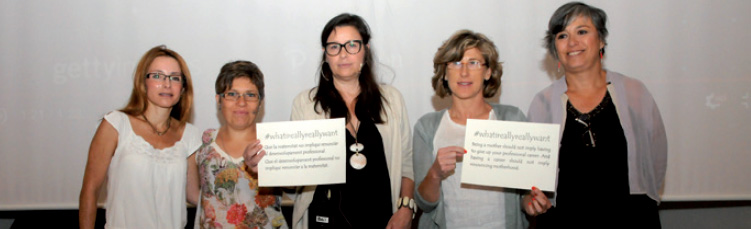 Iolanda Jordan, Montserrat Garcia, Elvira Bisbe, Elena O'Callaghan i Àngels Escorsell en el debat sobre conciliació.