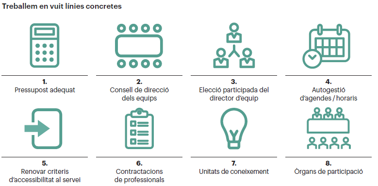 Hem avançat... Durant l'any 2016 i començaments del 2017 s'han fet eleccions de directors i adjunts amb participació professional. L'any 2017, el CatSalut ha assignat una part significativa del pressupost directament als equips del país. S'ha fet feina i en queda per fer. Als professionals i equips ens cal reclamar el desenvolupament de les mesures, ens hem de posicionar activament per aplicar- les. Aquest tema depèn de l'Administració, però també, en bona mesura, de nosaltres. Avancem i avançarem amb paraules, fets i resultats.