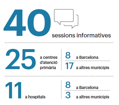Durant l'any 2016, hem fet 40 sessions informatives, 25 a centres d'atenció primària, 8 a Barcelona ciutat i 17 a altres municipis. Pel que fa als hospitals, n'hem visitat 11, 8 a Barcelona i 3 a altres municipis. El projecte de la UP està liderat pels membres de la Junta de Govern del CoMB, els quals participen activament en aquestes sessions juntament amb els tècnics de les diferents àrees del Col·legi. La resposta dels metges i metgesses és molt positiva, ja que permet un espai de conversa sobre la professió i sobre com el Col·legi pot ajudar- los en el seu exercici i també en el seu àmbit personal i familiar.