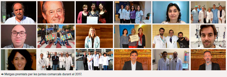 L'objectiu principal de les juntes comarcals és que el protagonista de la seva acció sigui el metge i és per això que, durant el 2017, s'ha fet un notable esforç per premiar l'activitat professional i científica de 65 professionals de les diverses comarques. Les beques i premis es van concedir en el marc de la Vigília de Sant Lluc del Bages, de la Jornada Sanitària del Maresme i de la Festivitat de Sant Cosme i Sant Damià d'Osona, així com també en les sessions acadèmiques de l'Alt Penedès, del Baix Llobregat, del Maresme i del Vallès Occidental.