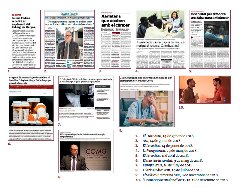 El 13 de gener, la candidatura de Jaume Padrós es va proclamar guanyadora de les eleccions a la Junta de Govern i delegats de l'Assemblea de Compromissaris del Col·legi de Metges de Barcelona. Van recollir la notícia TV3; les emissores RAC1, Catalunya Ràdio i Onda Cero; els diaris La Vanguardia, Ara, El Periódico, El Punt Avui i El País; les agències Europa Press, EFE i Agència Catalana de Notícies (ACN); les publicacions sanitàries Diario Médico, Redacción Médica, El diari de la sanitat, El Médico Interactivo, GacetaMédica.com, ConSalud, Acta Sanitaria i ISanidad, i els mitjans electrònics Vilaweb, Directe.cat, ABC.es, ElNacional.cat, Crónica Global, Economia Digital i Catalunya Press, entre d'altres.