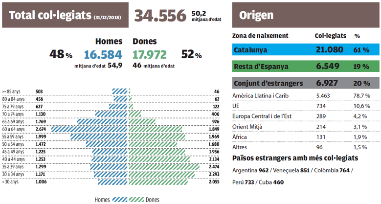 Continua la feminització de la professió, amb un 52 % de dones, augmenta el nombre de col·legiats en situació de jubilació i també de metges nascuts a l'estranger