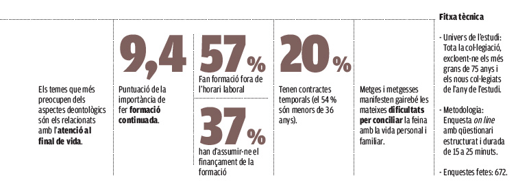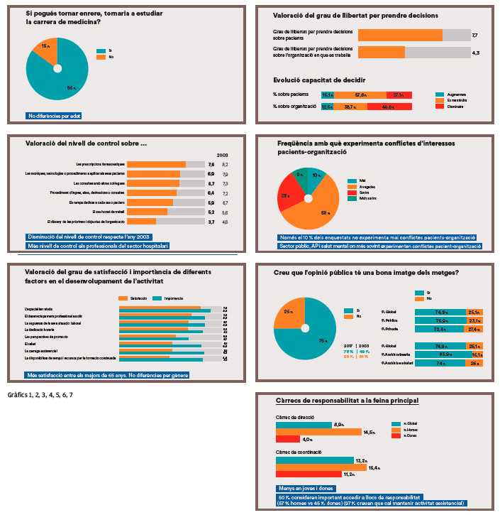 En el marc de la 18a Jornada d'Estiu de la Professió Mèdica celebrada a Puigcerdà el juliol de 2018, es van presentar les principals conclusions de l'Estudi de la Professió Mèdica (2017-2018). La majoria de professionals mostren en l'enquesta un alt grau de vocació i compromís: el 85 % tornarien a fer la carrera de Medicina (gràfic 1). També deixen constància dels principals problemes que els afecten i que els generen insatisfacció, com són la precarietat laboral o la manca de control i de llibertat per prendre determinades decisions que sovint topen amb les prioritats de les organitzacions on treballen.