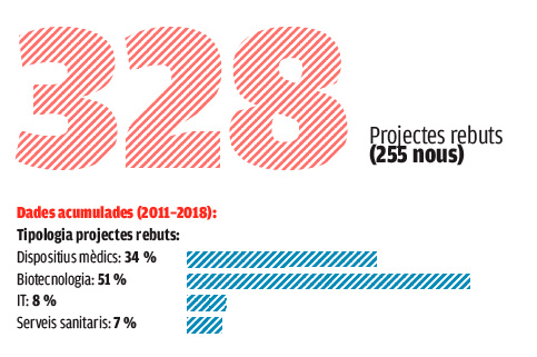 El gruix dels projectes que s'han analitzat deriven de la recerca que porten a terme els mateixos centres de recerca (27 %), les universitats (23 %) i els hospitals (12 %). Pel que fa a la tipologia, la gran majoria provenen de l'àmbit biotec (51 %) o estan relacionats amb el desenvolupament de dispositius mèdics (34 %) i estan en una fase de desenvolupament de seed (40%) o start-up (40 %).